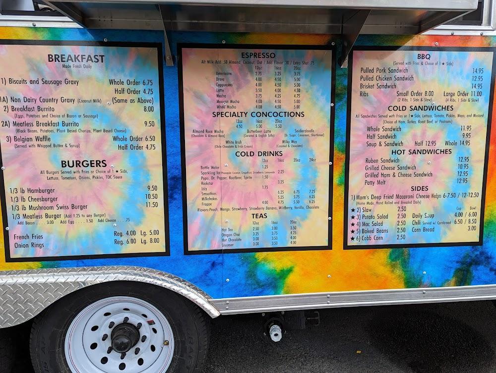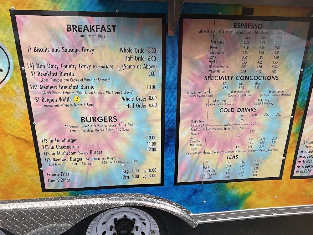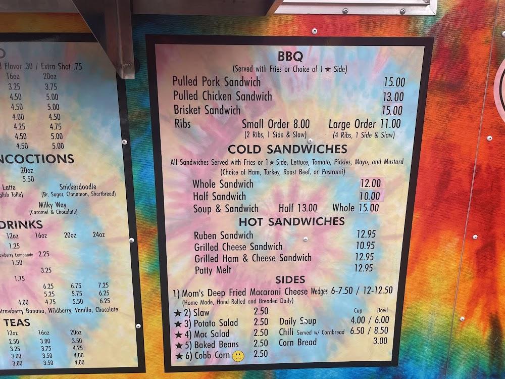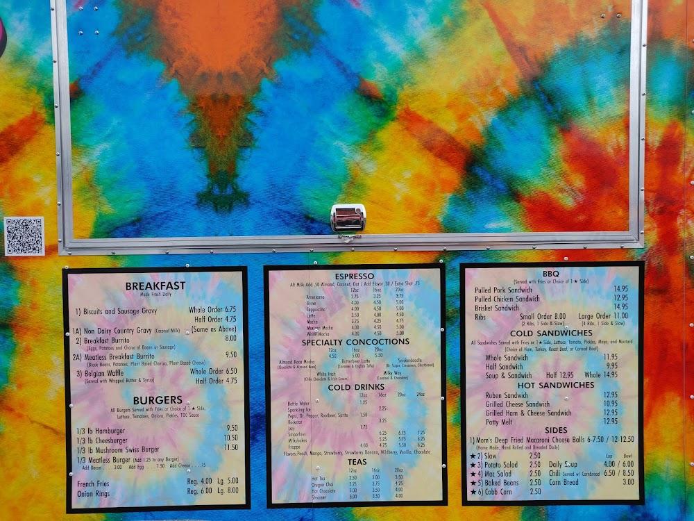 The menu at The Tie Dyed Chef offers variety with an emphasis on quality. Breakfast features staples like biscuits and gravy, perfect for starting the day. Lunchtime favorites include succulent sandwiches and hearty burgers. Signature items like the mushroom swiss burger and BBQ options are popular among all customers.